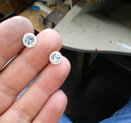 1.60 קראט עגילי אקוומרין הילה יהלומים טבעיים