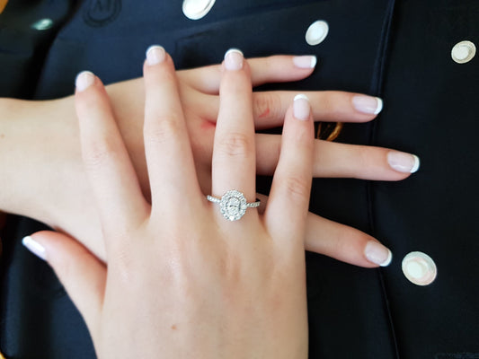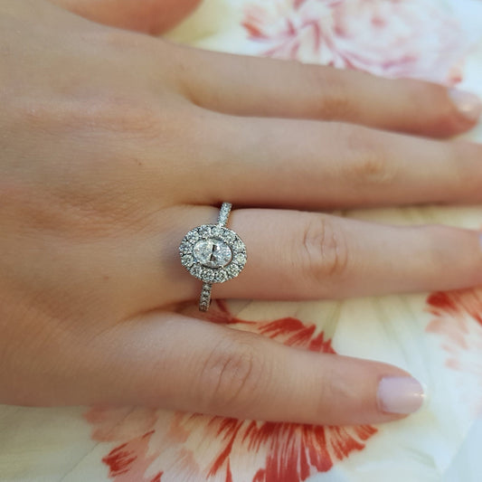 טבעת אירוסין 1 קראט אובל יהלום הילה