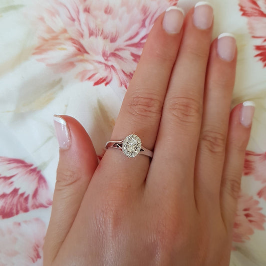 טבעת אירוסין 0.44 קראט אובל יהלום הילה, זהב לבן 14KT