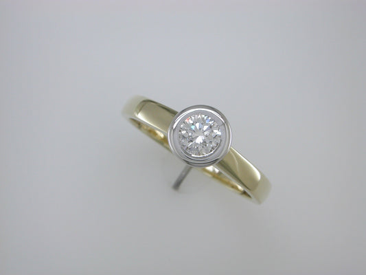 טבעת אירוסין 0.30 קראט יהלום, טבעת 14 קראט זהב לבן וצהוב.