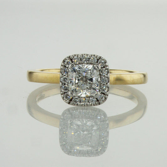טבעת אירוסין בחיתוך כרית 1 קראט. טבעת אירוסין יהלום זהב בשני גוונים.