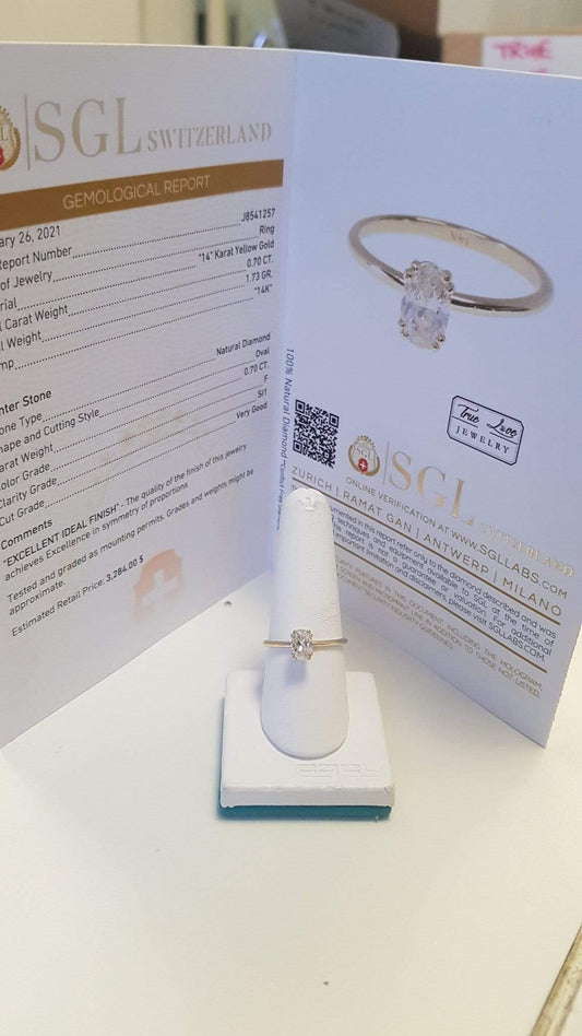 טבעת אירוסין יהלום אובל סוליטר בזהב צהוב 0.70 קראט