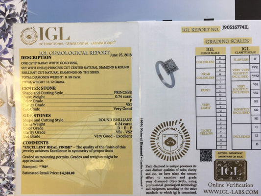טבעת אירוסין יהלום בצורת פרינסס 0.98 קראט