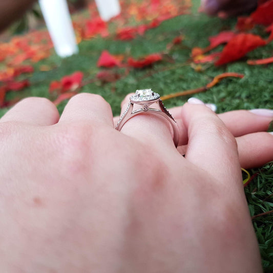 טבעת אירוסין יהלום קושן הלו 0.92 קראט
