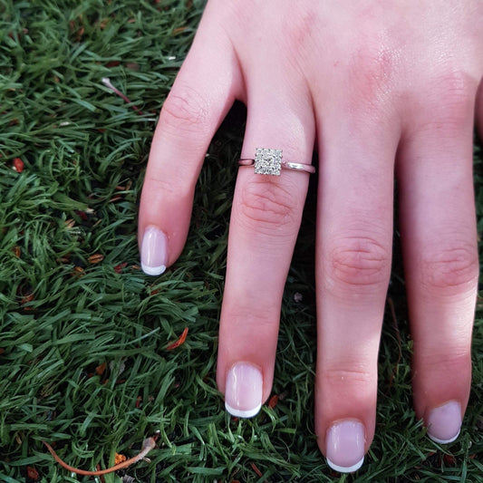 טבעת אירוסין יהלום פרינסס הלו 0.27 קראט