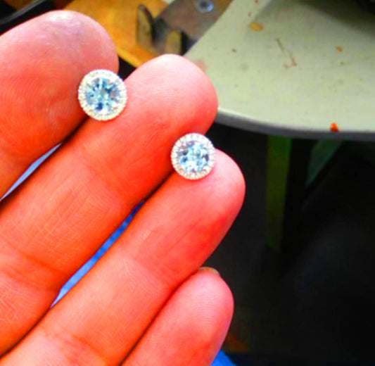 עגיליי אקוומרין הילה יהלום 1.60 קראט