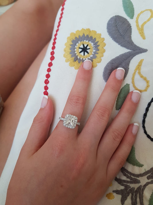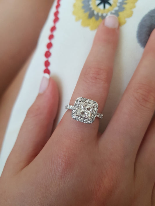 טבעת אירוסין הילה בחיתוך 2 קראט פרינסס, יהלומים טבעיים, טבעת יהלום פרינסס הילה