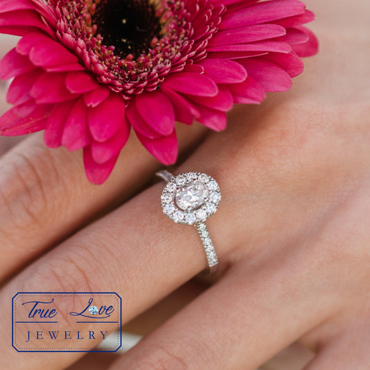טבעת אירוסין 1 קראט אובל יהלום הילה