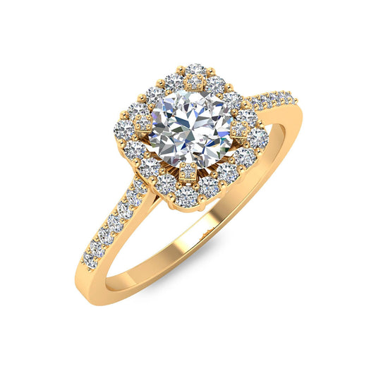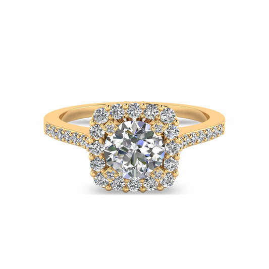 טבעת אירוסין עגולה 1 קראט Halo Diamond, טבעת אירוסין זהב צהוב.