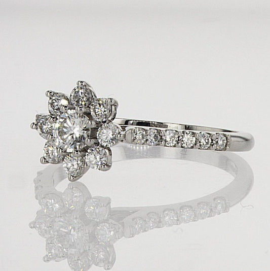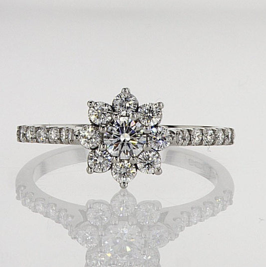 טבעת אירוסין משובצת יהלומים עגולים בצורת פרח בזהב לבן 14 קראט 0.68 קראט