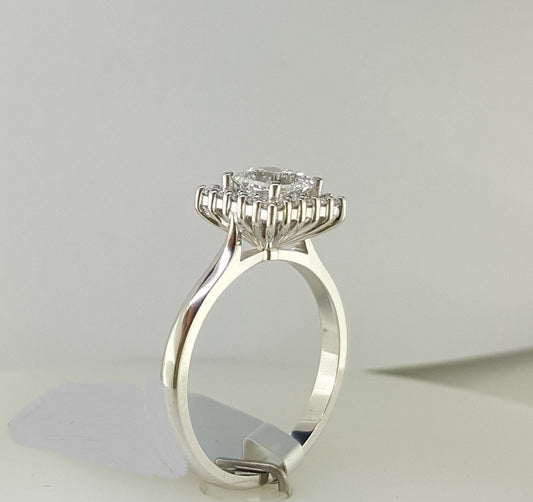 טבעת יהלום פרח 0.68 קראט זהב לבן