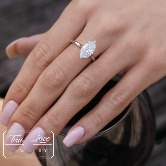 טבעת יהלום בחיתוך מרקיז 0.30 קראט F-G Si1, טבעת יהלום אירוסין ייחודית