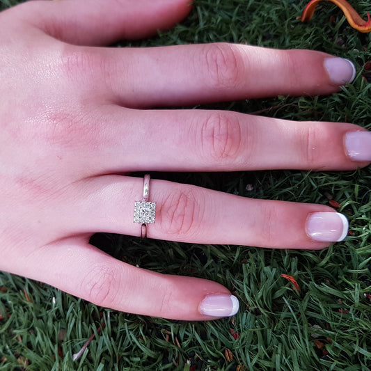 טבעת אירוסין עדינה ומיוחדת בחיתוך פרינסס 0.27 קראט